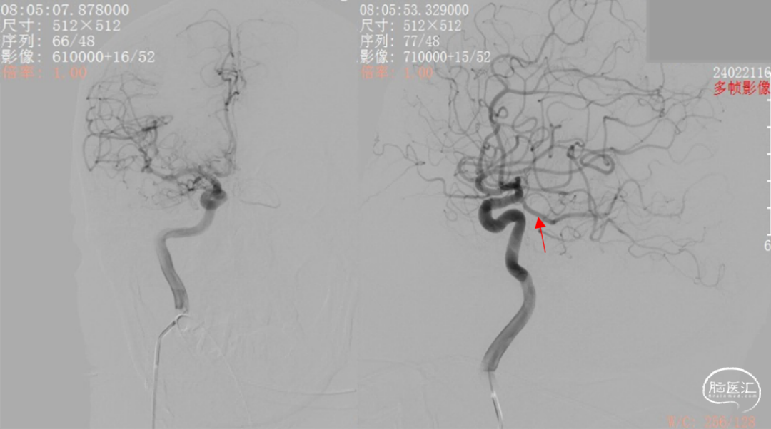 图10. 右侧颈总动脉造影:后交通动脉胚胎型