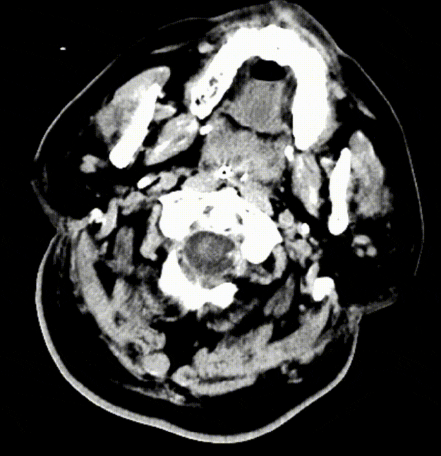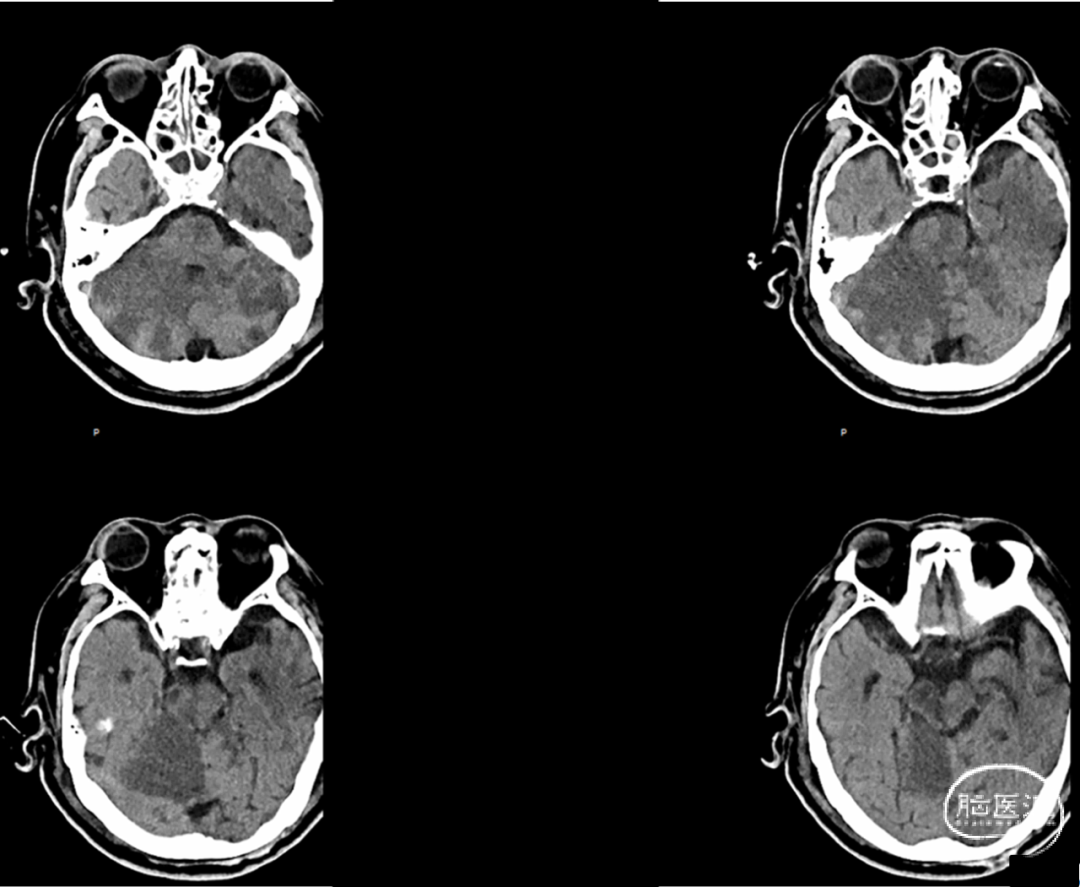 图23. 术后两周CT:脑组织水肿消退,脑干小脑多发梗塞灶