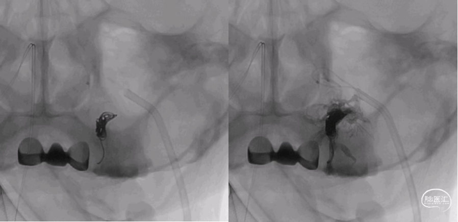 舌下神经管区硬脑膜动静脉瘘是所有硬脑膜动静脉瘘中占比较低的一个亚型。经静脉途径栓塞治疗是这一部位dAVF安全有效的治疗方法。术前、术中经双容积影像后处理技术指导可以大大提高栓塞的精准性,安全性和有效性。