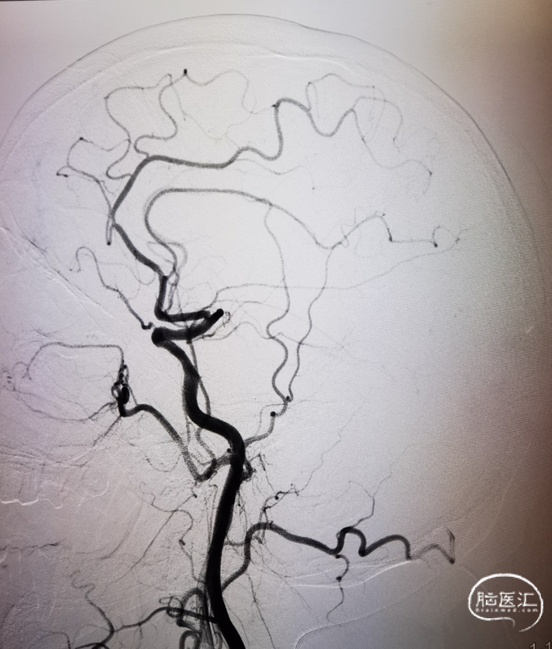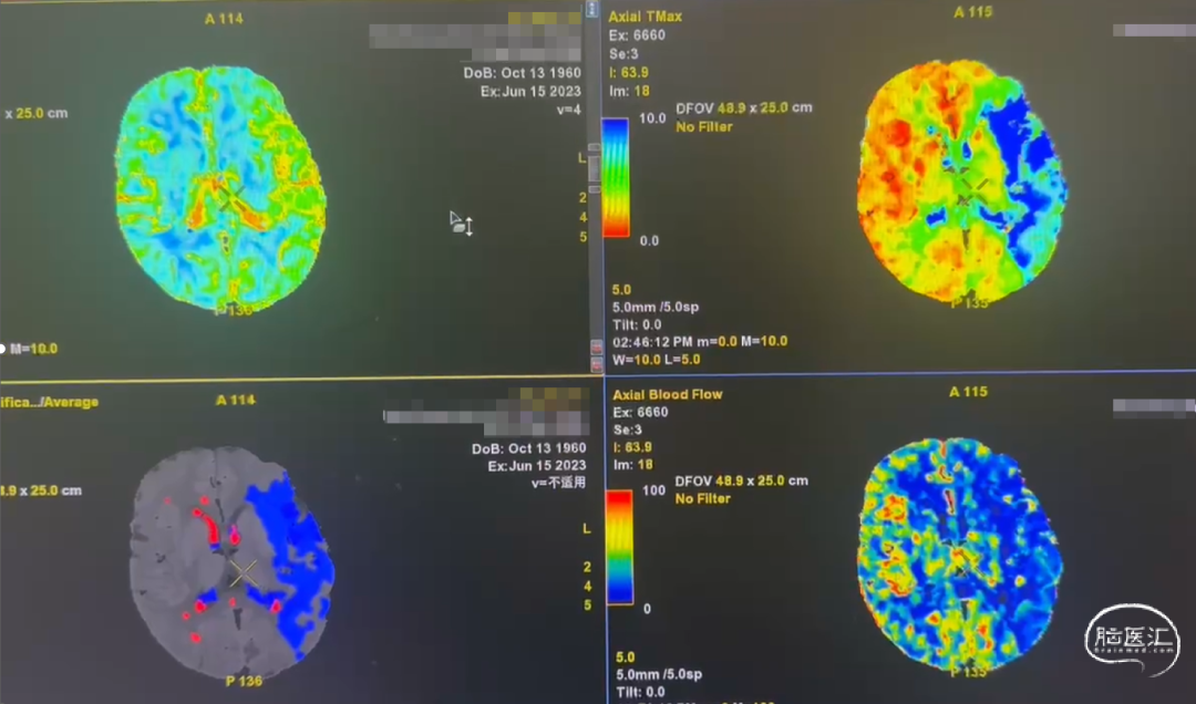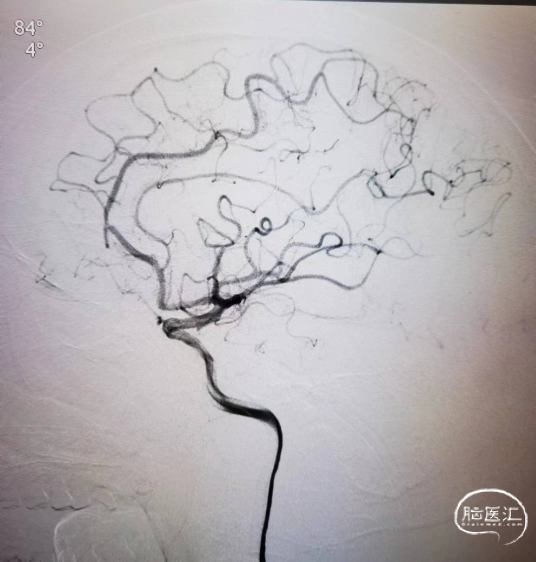 神志嗜睡,言语含糊,查体欠合作,双侧瞳孔等圆等大,直径约3.0mm,双瞳直接及间接光反射灵敏,右侧鼻唇沟变浅,伸舌居中,颈软,四肢腱反射正常,四肢肌力适中,左侧肢体肌力V级,右侧肢体肌力III级,双下肢病理反射阴性。出院前mRS 4分,NIHSS:8分。已转当地医院进一步康复治疗,仍在随访中。