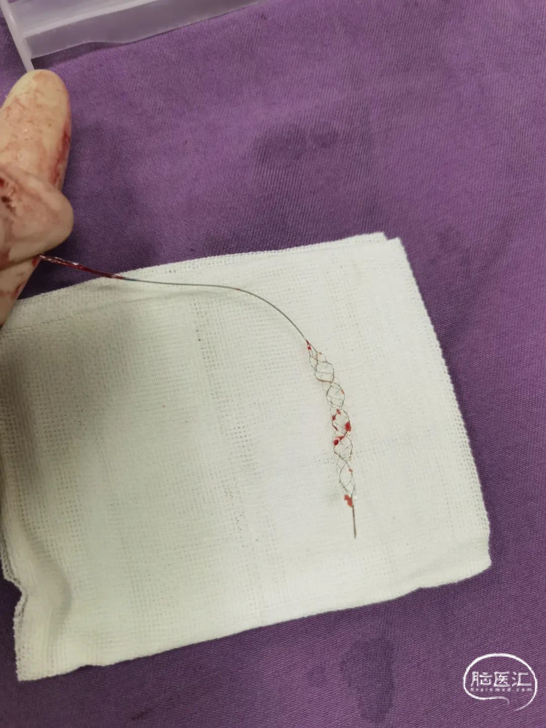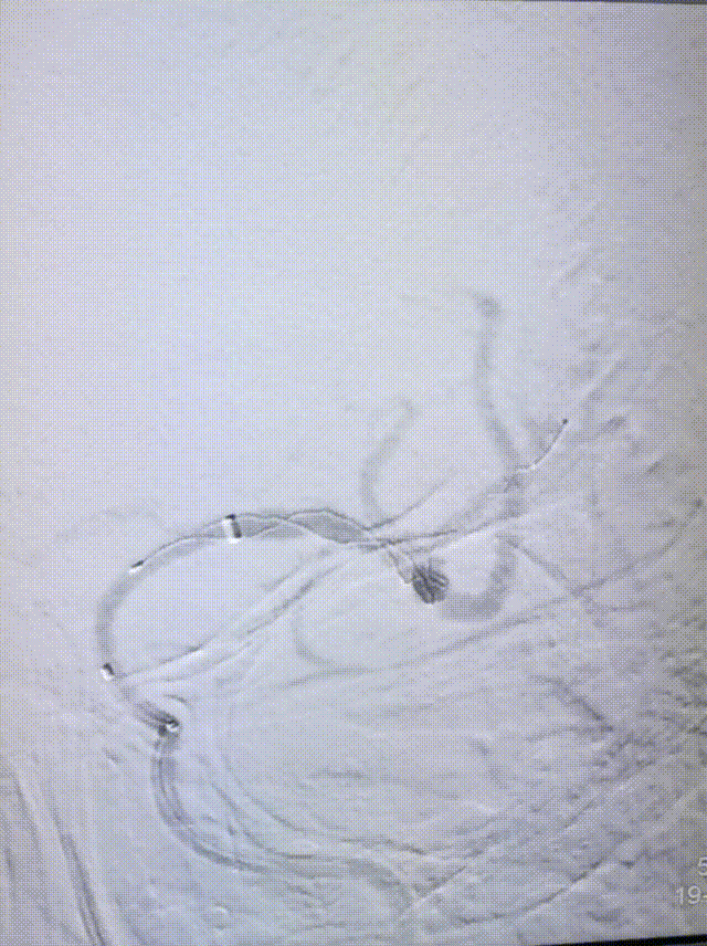 Syphonet®取栓支架释放后可根据支架的蜂腰形态定位血栓位置。且与血栓融合过程,全程可视,支架直径压缩程度的改变可反馈支架与血栓的融合过程。回撤支架,观察血栓是否移位。