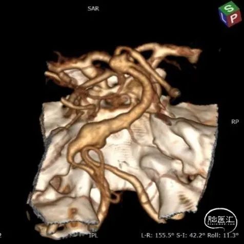 椎基底冗长扩张(vertebrobasilar dolichoectasia,VBD)是一类比较少见的脑血管病,约占脑卒中患者的7%-18%,在普通人群中约占1%-4%[1]。其典型影像表现为椎基底动脉扩张、延长以及迂曲,其病因尚不明确可能和高血压、胶原血管病等等有关。目前大多数学者认为该疾病的发病机制是由于血管壁的结缔组织内基质金属蛋白酶和抗蛋白酶之间的平衡失调以及异常的血管重建导致[2,3]。病理上VBD常常表现为血管壁内出血和血栓形成循环交替出现。VBD的自然病史差异很大,患者可能表现为长期稳定,然后突然快速进展出现脑干压迫、神经压迫、脑积水、颅内出血从而导致病人死亡。有研究报道进展型VBD 5年死亡率超过30%,疾病诊断时无明显症状相对预后较好[4]。Smoker等学者将患者的CTA表现将患者分为轻、中、重度[5,6]。轻度VBD患者预后较好,中、重度VBD患者病情容易进展,预后相对较差[7]。
