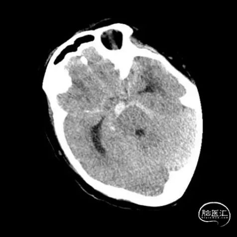 入院查体:生命体征平稳,气管插管及镇静状态,双瞳孔等大等圆,直径3mm,光反射灵敏,口角无歪斜,颈抵抗阳性。肌张力无亢进。四肢感觉和肌力检查不能配合,双侧病理征阴性。