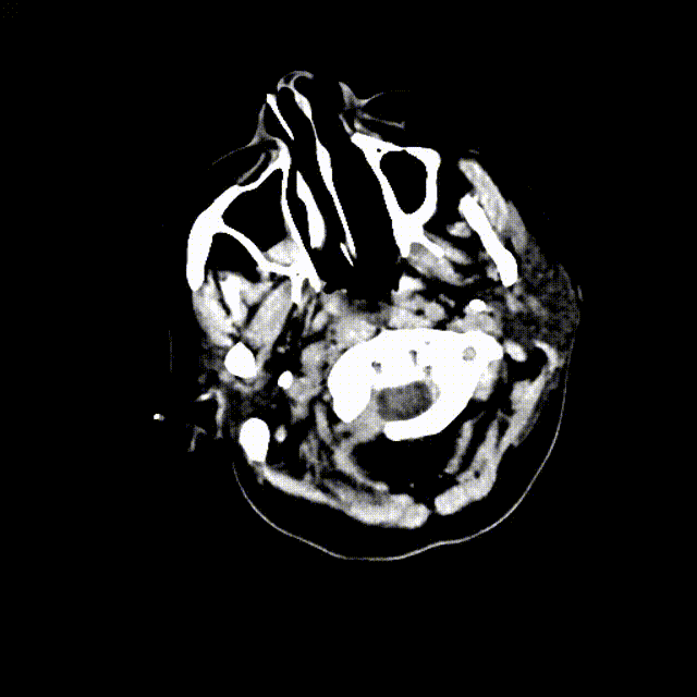患者5小时前在家里做家务时突然感到剧烈头痛,伴有恶心,无意识不清,无肢体抽搐,无视物重影,休息后无明显缓解遂急诊送往当地医院检查,头颅CT提示“蛛网膜下腔出血”,进一步头颅CTA检查提示“颅内动脉瘤”。当地行气管插管。为进一步诊治转来我院。