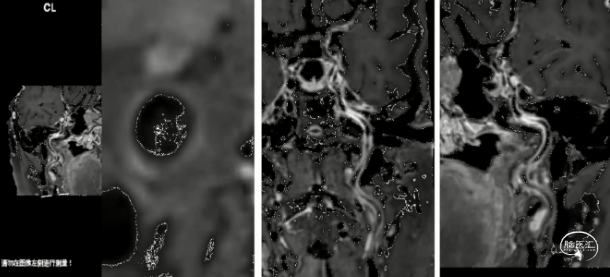 3D-SPACE示,①右侧颈内动脉、右侧大脑前动脉A1段、右侧大脑中动脉管壁增厚,考虑动脉粥样硬化并不稳定斑块形成可能,②左侧颈内动脉交通段、左侧大脑中动脉、双侧大脑后动脉、双侧椎动脉V4段动脉粥样硬化改变,以上,请结合临床及其他检查协诊