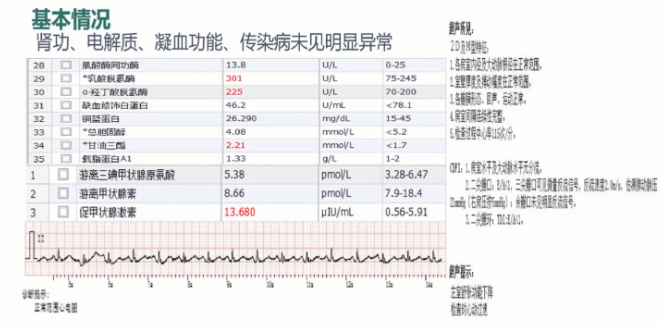 基本情况:肾功、电解质、凝血功能、传染病未见明显异常。