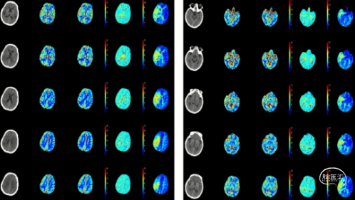 CTP(2023.06.26/本院):右侧额顶叶、半卵圆中心见片状灌注延迟区,TTP、MTT延长,CBF减低