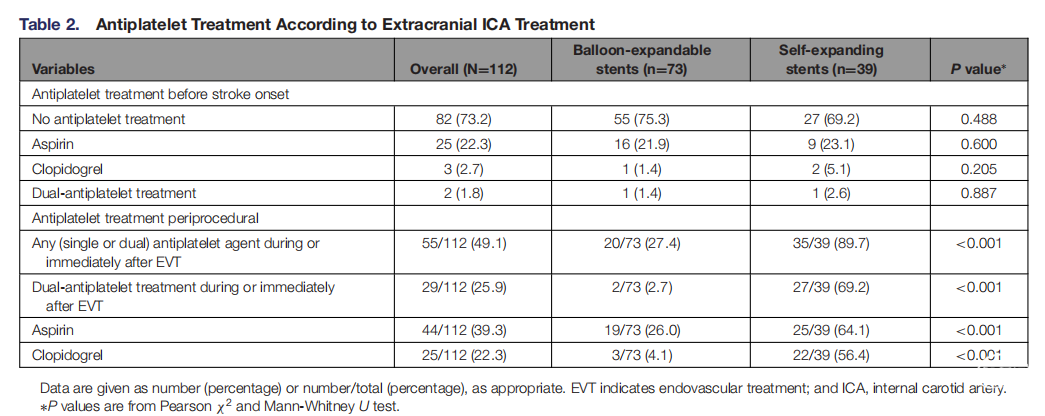 表2. 颈内动脉颅外段闭塞的抗血小板治疗方案
