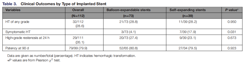 该研究证实球扩支架联合单一抗血小板药物对于串联病变导致的前循环大血管闭塞AIS患者,具有更低的症状性颅内出血发生率和长期良好的支架通畅率,但仍需大样本多中心临床研究验证。