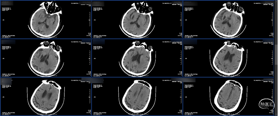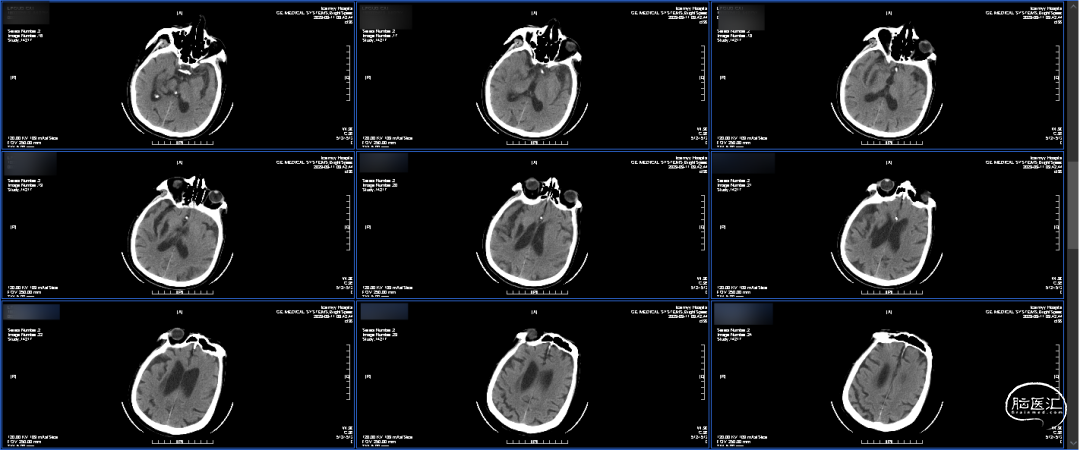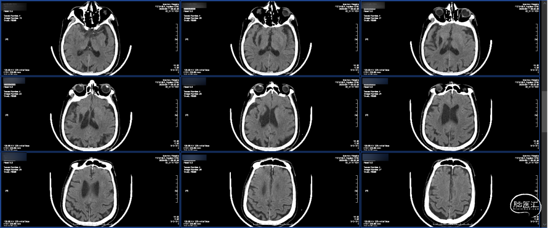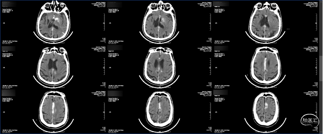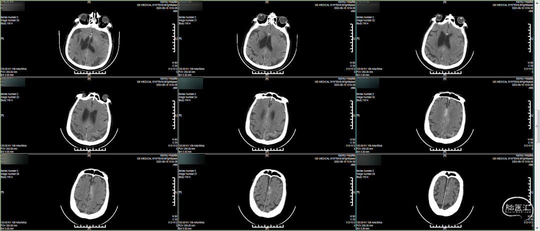 出院前CT:出血完全吸收,左侧大脑半球未见确切梗塞灶。