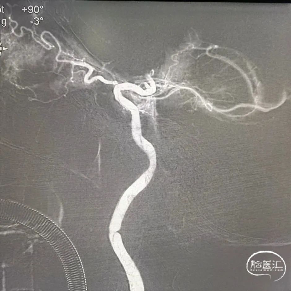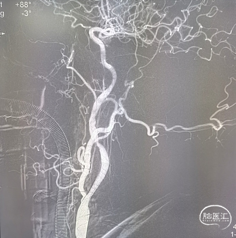 再次超选发现颈内动脉起始部重度狭窄伴夹层。