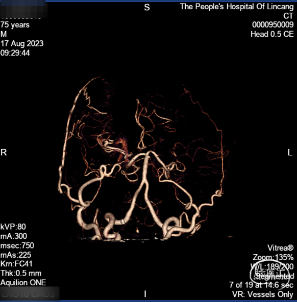 术前CTA:颅内代偿可。