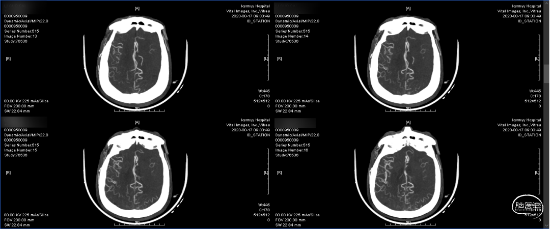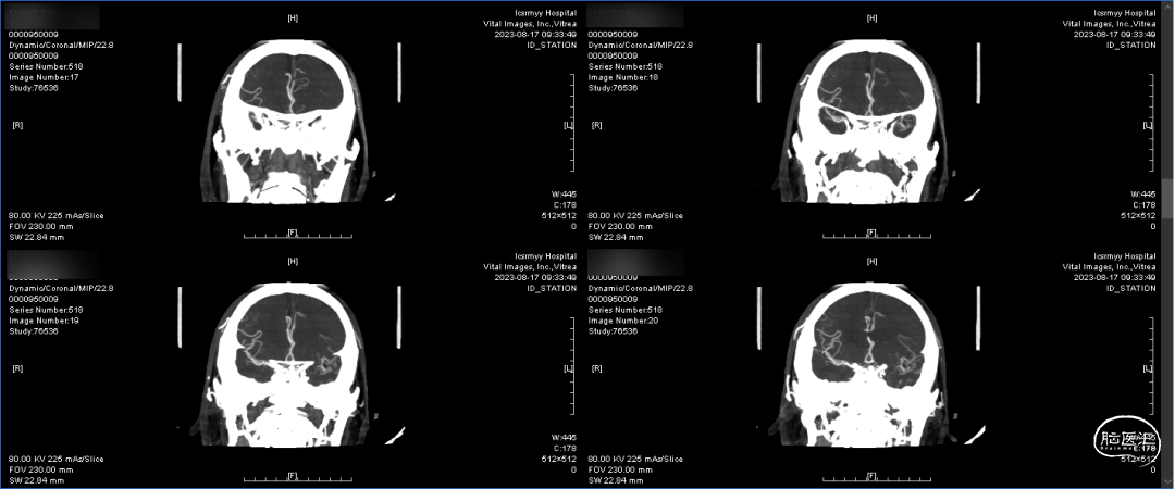 术后复查CT有少量出血,在和家属沟通后还是给予抗血小板治疗,避免了血栓形成,得到了良好预后。