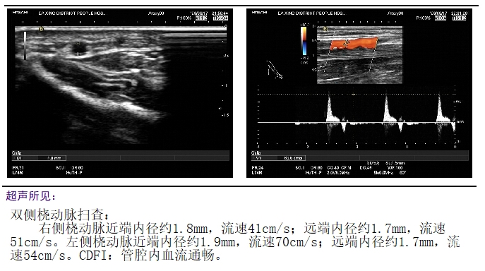 治疗术前完善桡动脉彩超,评估桡动脉路径情况。