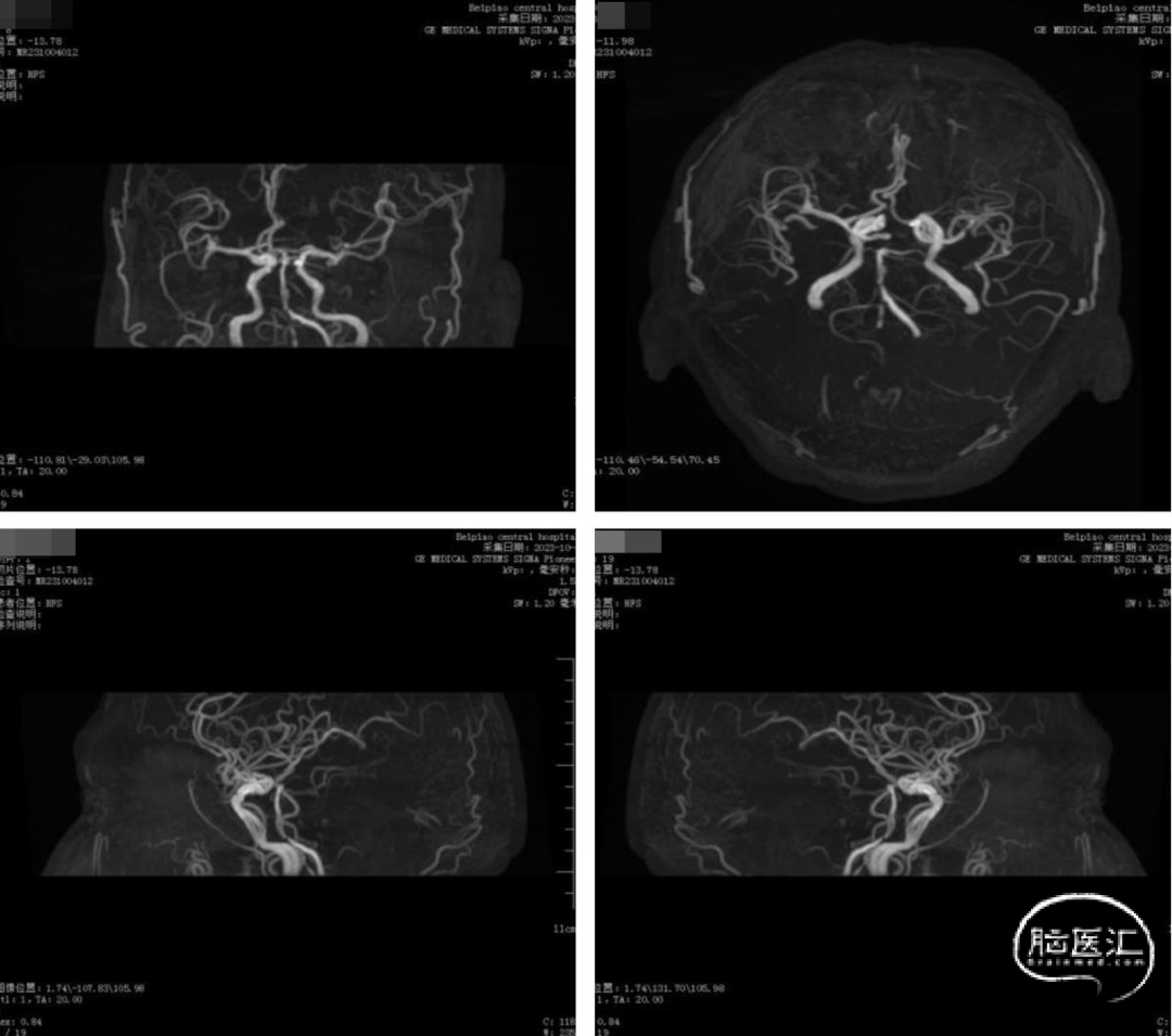 现病史:患者近1个月出现双眼视物不清,眩晕反复发作,就诊住院后经MRA及头颈CTA回报确诊为:双侧椎动脉V4段重度狭窄。