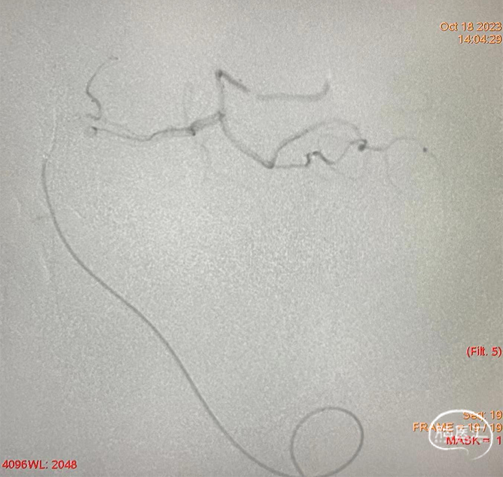 对于血管走形迂曲,展示出优异的通过性,高到位接近病变位置。