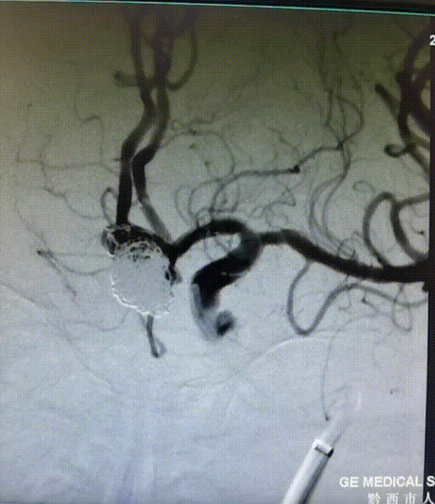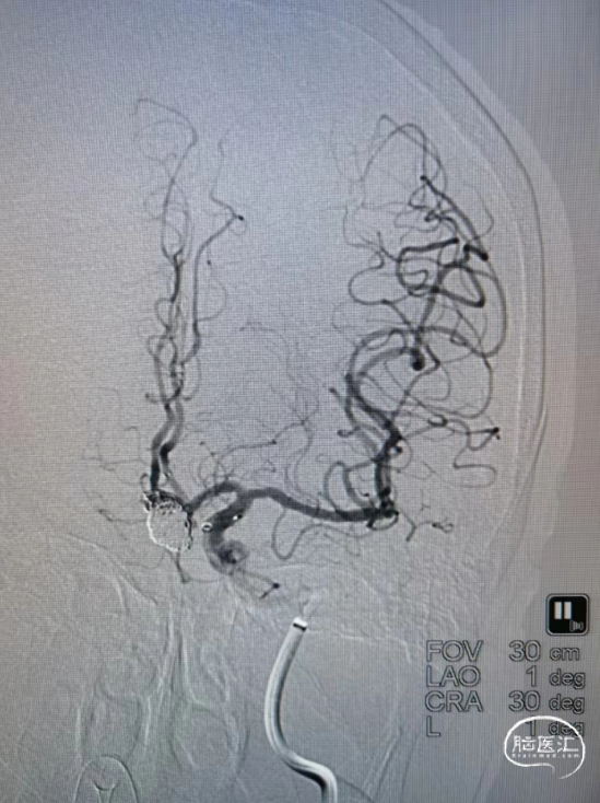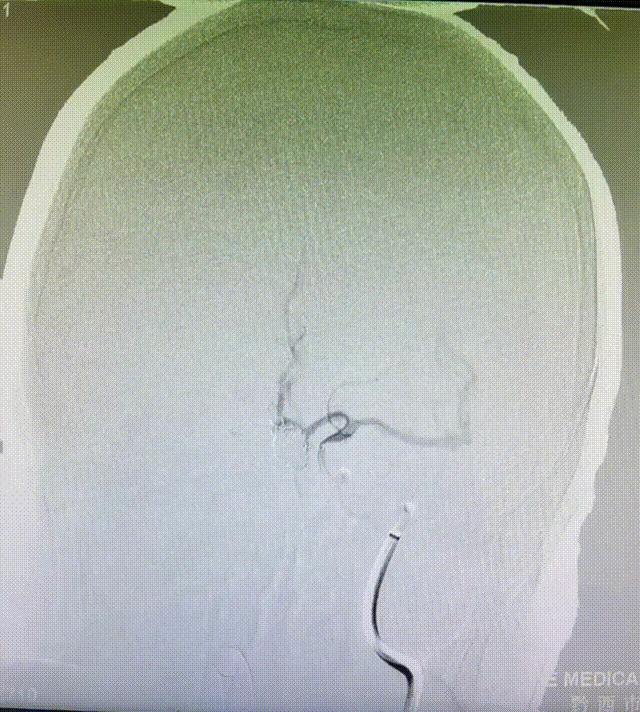 4、0.014" 导丝(0.014 200cm)结合微导管(0.017" 微导管)进入大脑前交通段。