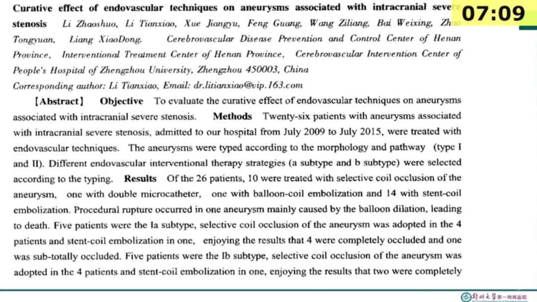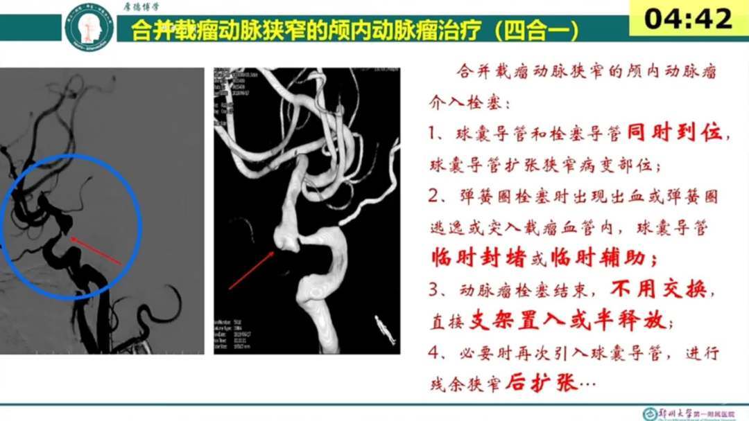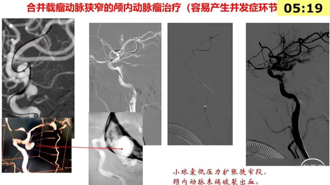 1、载瘤动脉狭窄合并颅内不规则动脉瘤的高危患者,同时行动脉狭窄成型以及颅内动脉瘤栓塞可能是更合理的选择。