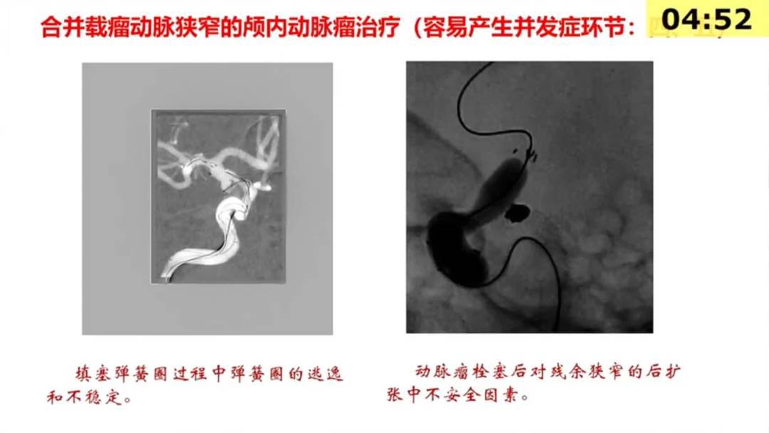 综合文献报道对于载瘤动脉狭窄合并颅内不规则动脉瘤的高危患者,同时行动脉狭窄成型以及颅内动脉瘤栓塞可能是更合理的选择。