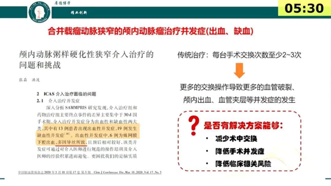 ●传统治疗方法在处理狭窄时可能需要交换球囊和微导管的步骤,对于狭窄合并动脉瘤这一类病变,交换过程会增加出血的风险。