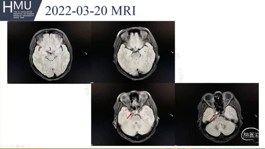 入院前4日无诱因出现后枕部头痛,呈针刺样持续性疼痛,入院前1日,出现右眼睑下垂伴眼球胀痛