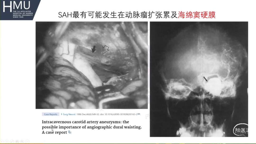 “SAH最有可能发生在动脉瘤扩张累及海绵窦硬膜”。