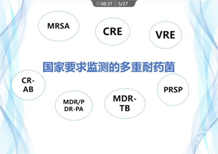 Pland定义:多重耐药菌(MDR):三类或三类以上抗菌药物同时呈现耐药的细菌;广泛耐药细菌(XDR):指细菌对常用抗菌药物几乎全部耐药;全耐药细菌(PDR):指对所以分类的常用抗菌药物全部耐药。
