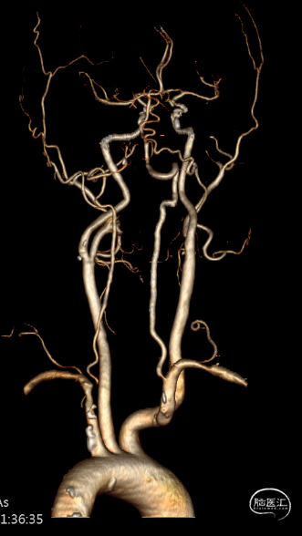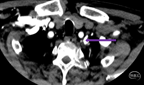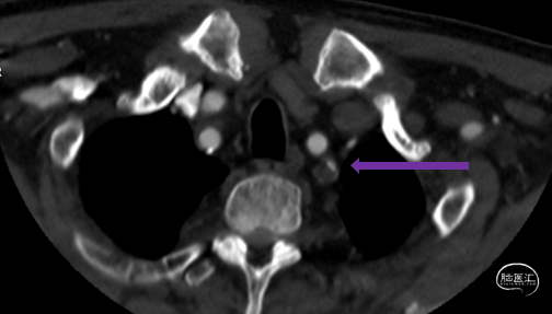 头颈CTA:左侧椎动脉起始、左侧锁骨下动脉重度狭窄。