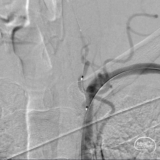 扩张锁骨下动脉时,预判椎动脉有栓塞风险,椎动脉预留保护导丝通路很重要。