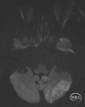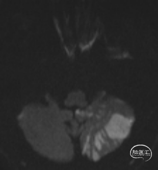术后头晕呕吐,当日DWI:左侧小脑梗死,MRA未见明显大血管栓塞。