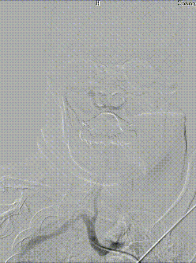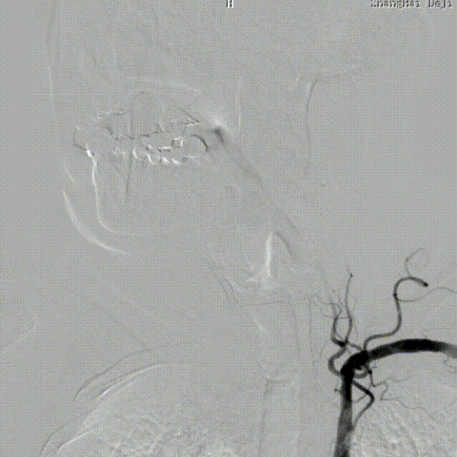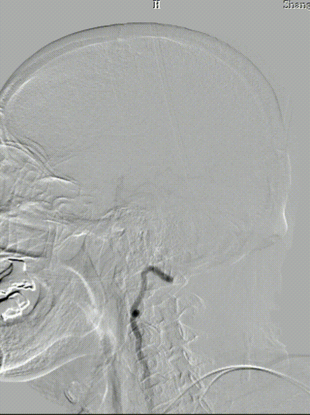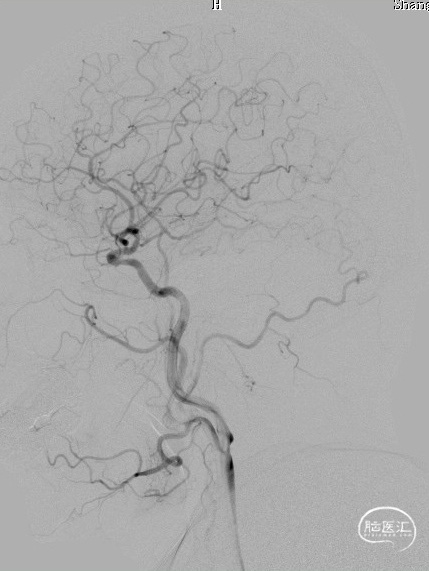立即行Dyna-CT,未见脑出血表现,立即予以尼卡地平及尼莫地平降压,动脉静推负荷量替罗非班。