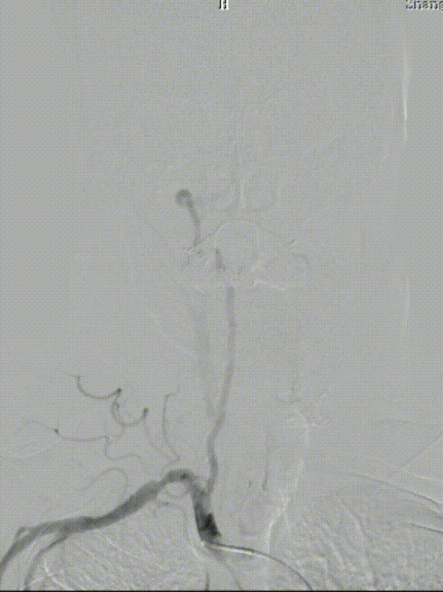 双侧锁骨下动脉造影见椎动脉、基底动脉血流通畅,远端未见栓塞表现。