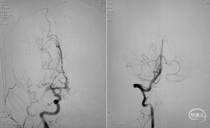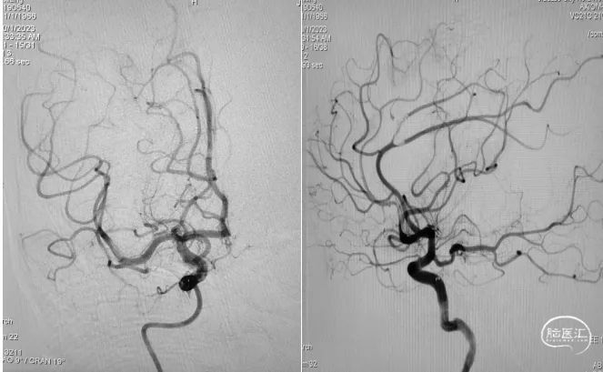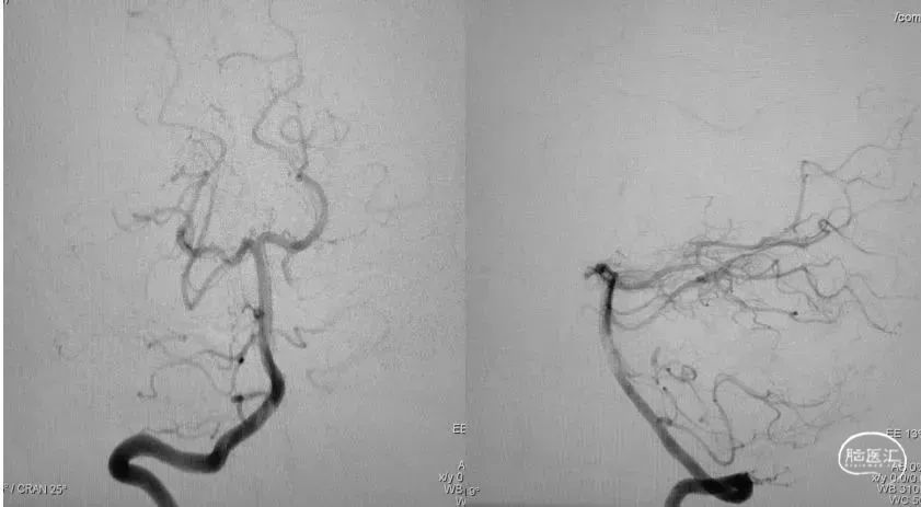 DSA提示:右侧大脑中动脉M1段以远闭塞,右侧大脑前动脉皮层支少量代偿,右侧大脑前动脉A3段血栓影,远端流速可,基底动脉尖端未见显影,考虑急性闭塞。