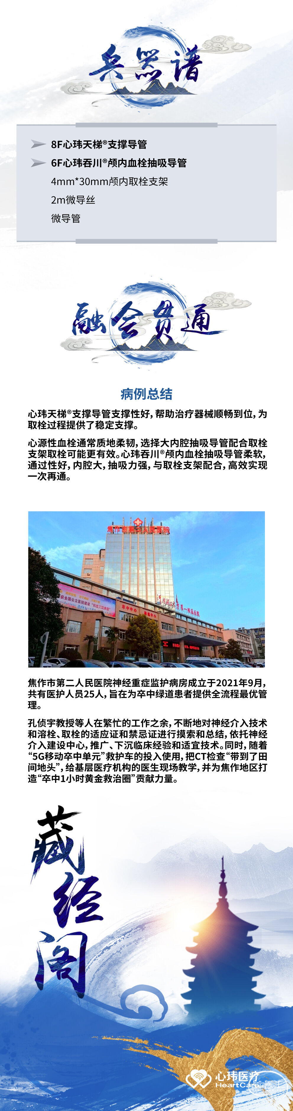 6F心玮吞川®颅内血栓抽吸导管行基底动脉血栓抽吸。