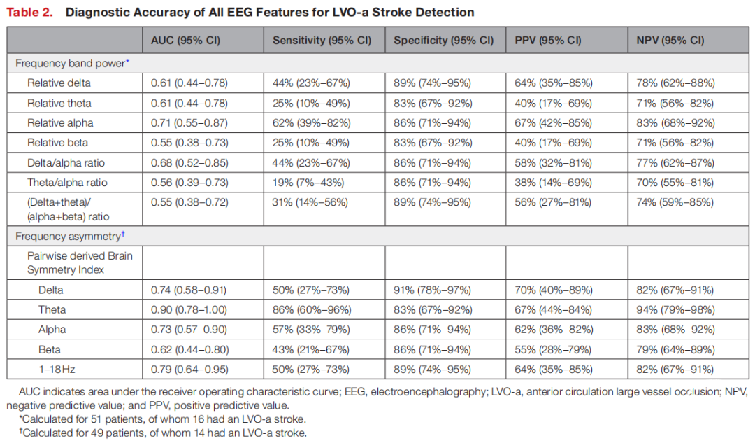 表2. 所有EEG特征对LVO-a卒中检测的诊断准确性。