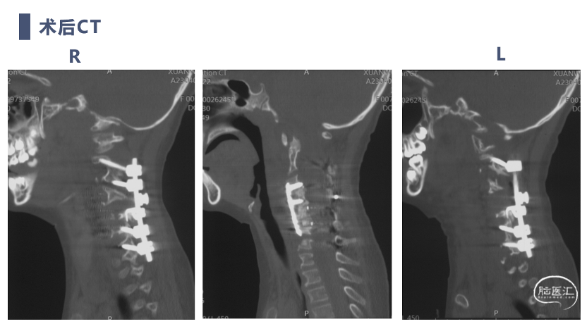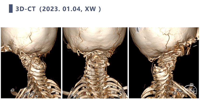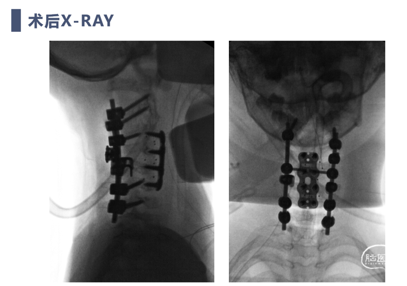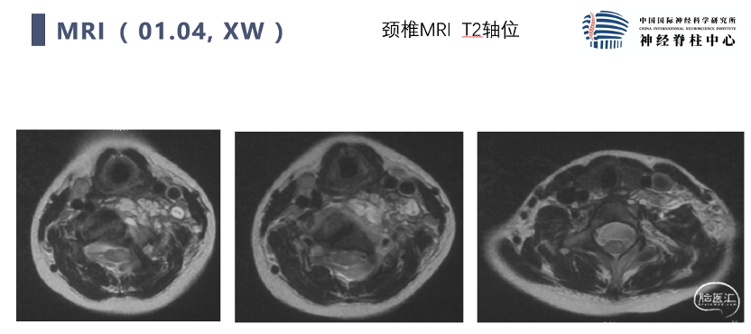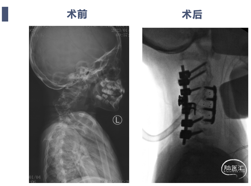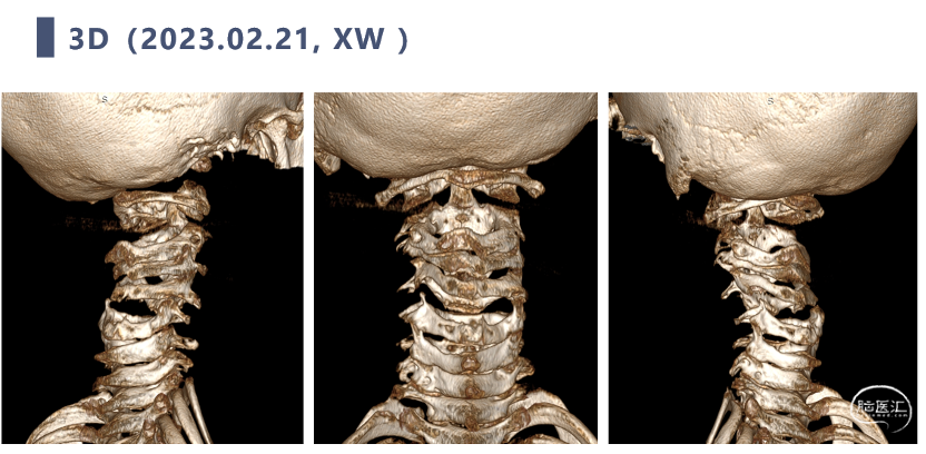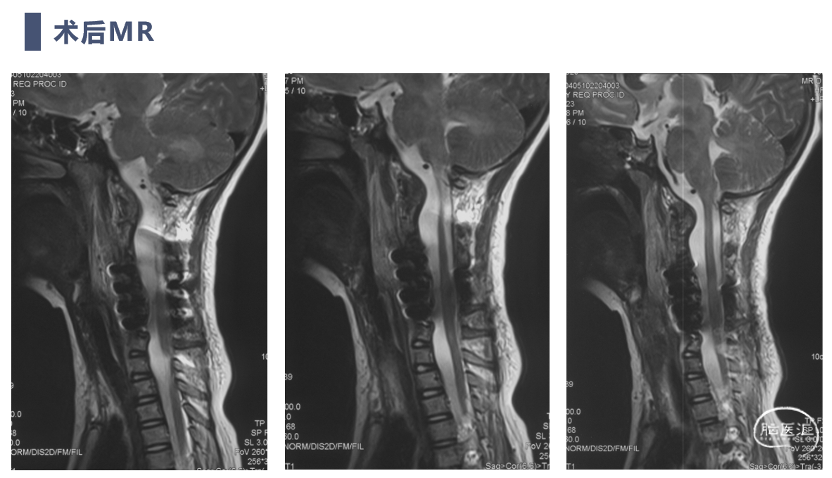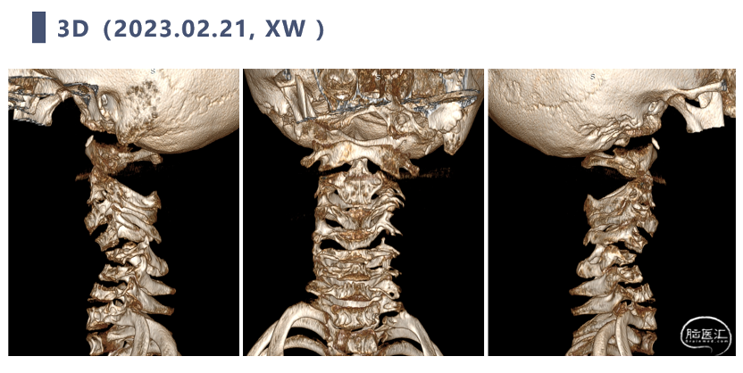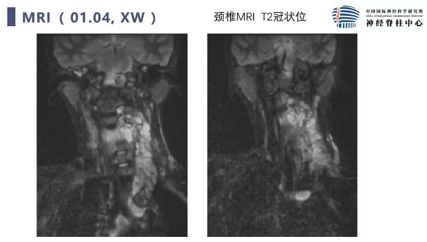 现病史:3月前活动后出现颈部剧烈疼痛,当地医院治疗给予止痛药物,程度进行性加重,不能起床活动头部,VAS评分8分。当地医院行颈椎MR检查示:颈椎脱位伴后凸畸形。