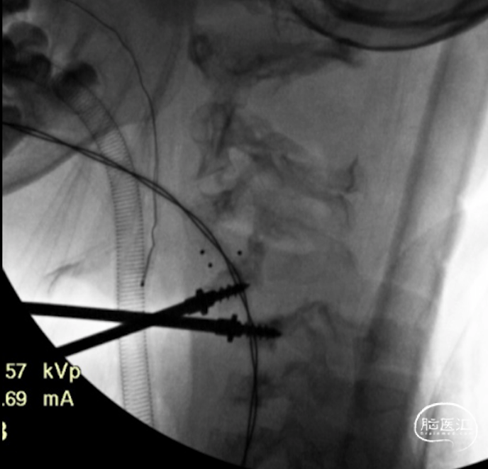 C5椎体内置入提拉螺钉,穿透椎体后壁,达到最佳提拉复位力量