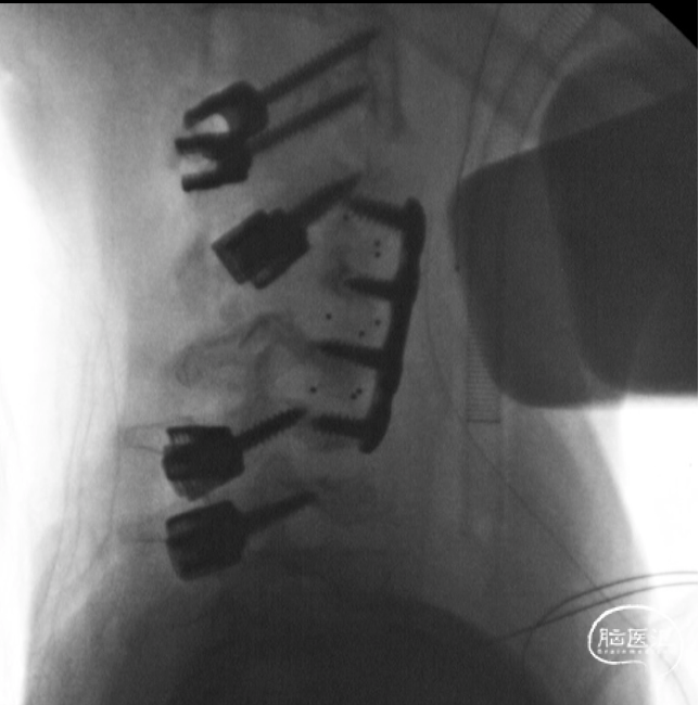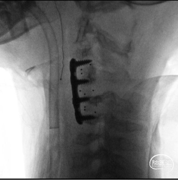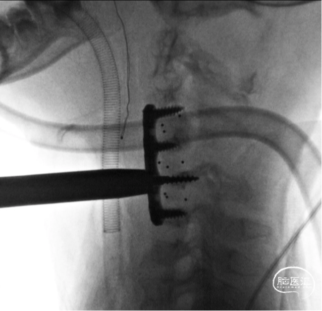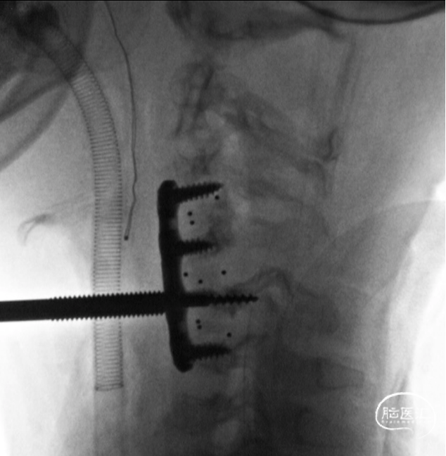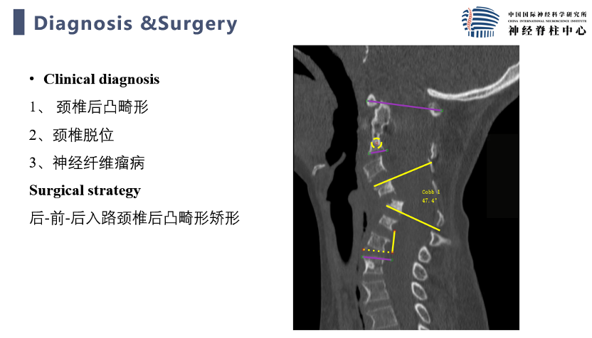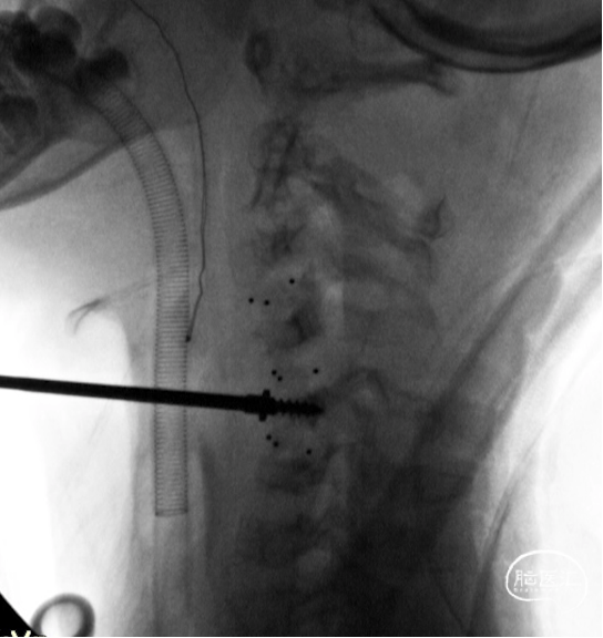 小儿神经纤维瘤病伴脊柱后凸畸形是颈椎畸形中难度较大的手术类型,本例病人脱位严重,骨量极少,对于置钉及矫形都有很大的挑战。