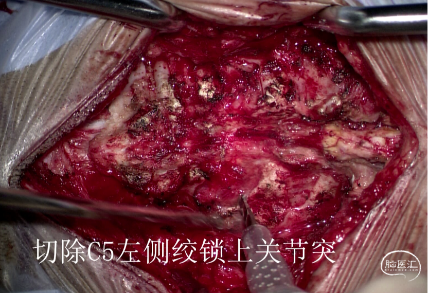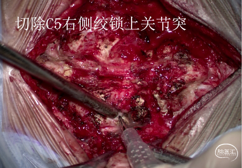 首先行后路手术,切除双侧C5绞锁的上关节突