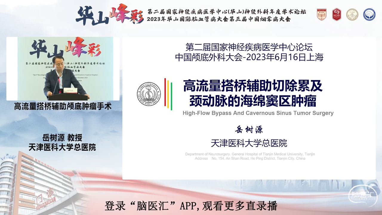 岳树源教授:高流量大桥辅助切除累及颈动脉的海绵窦区肿瘤