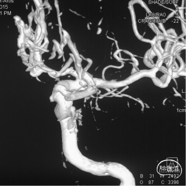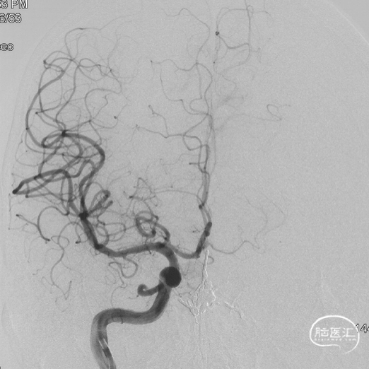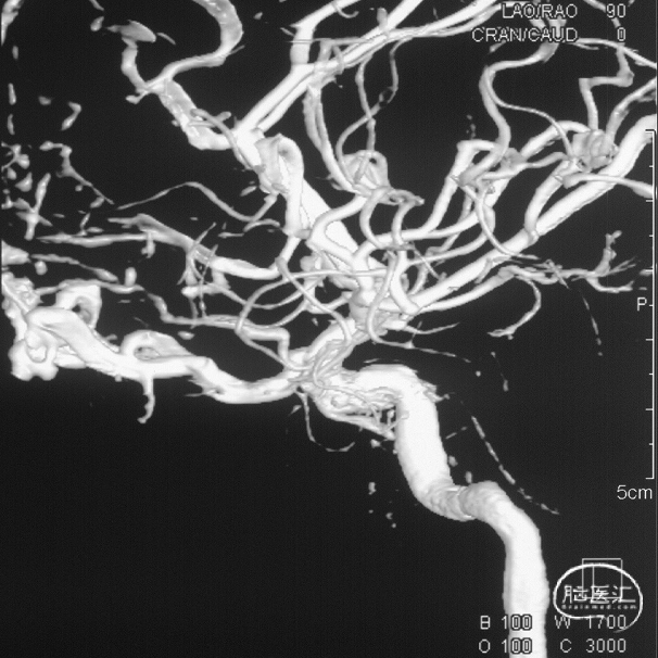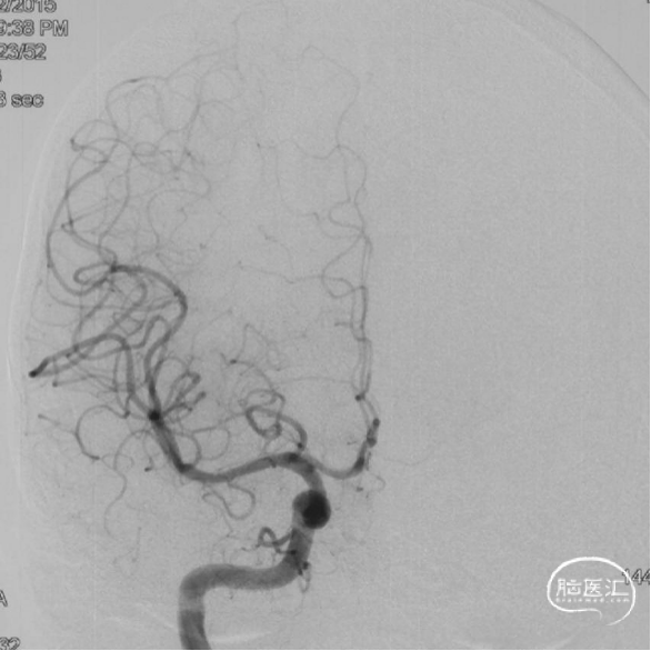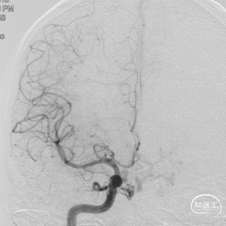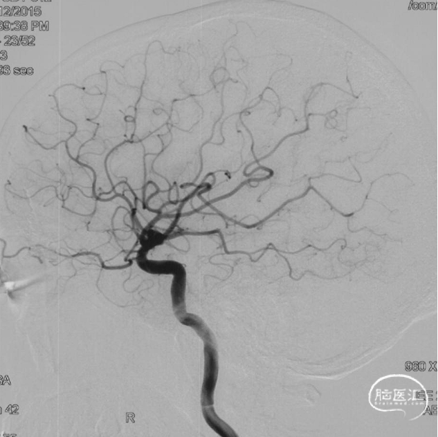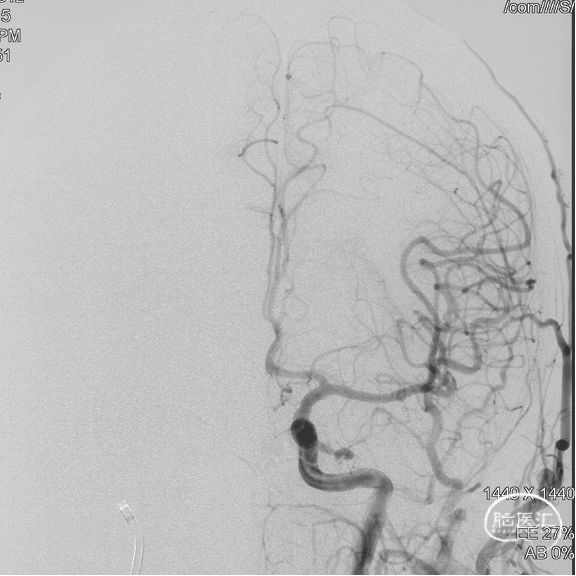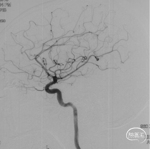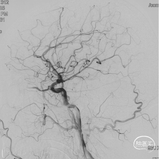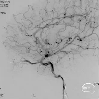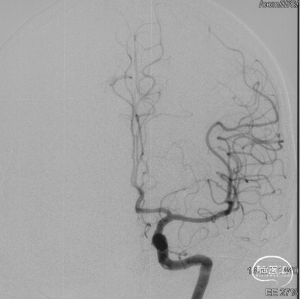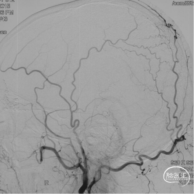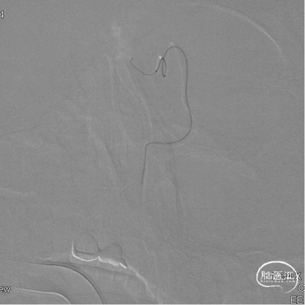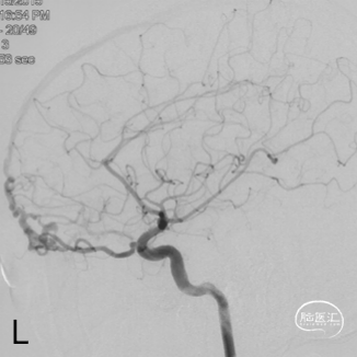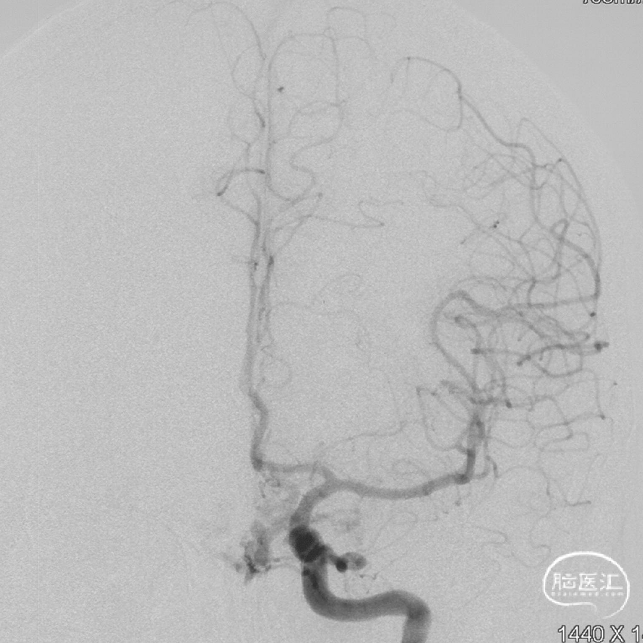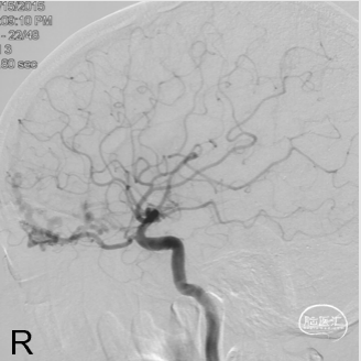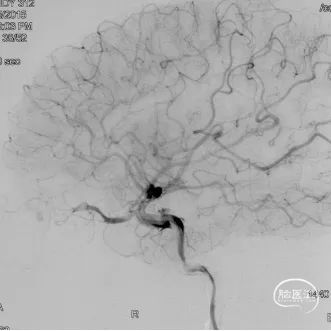 现病史:患者1年余前无明显诱因出现左下肢乏力,行走拖步,无言语不清、视物不清、意识障碍等不适,当地医院头颅MRI提示右侧基底节区脑梗死,前颅底异常血管影,考虑DAVF,经药物保守治疗,临床症状好转,无明显后遗症,为进一步治疗DAVF来我院。
