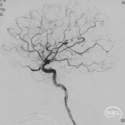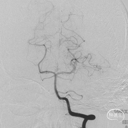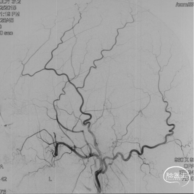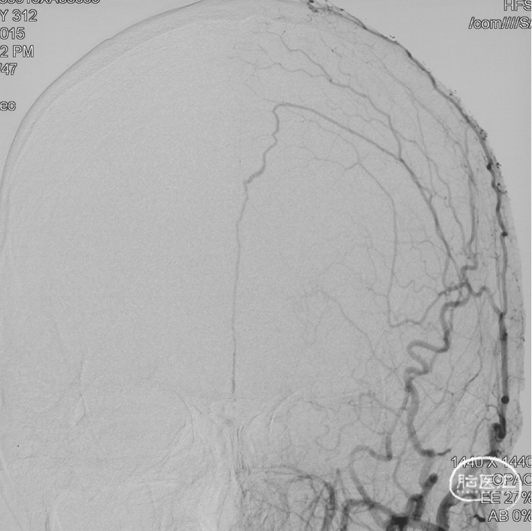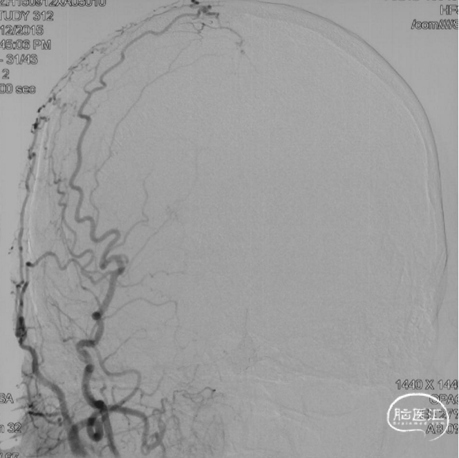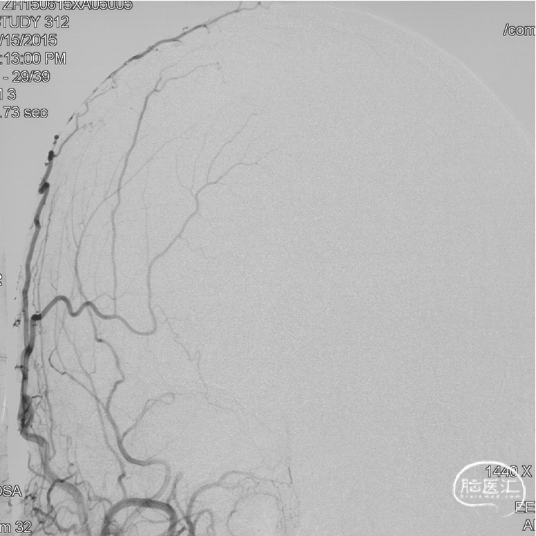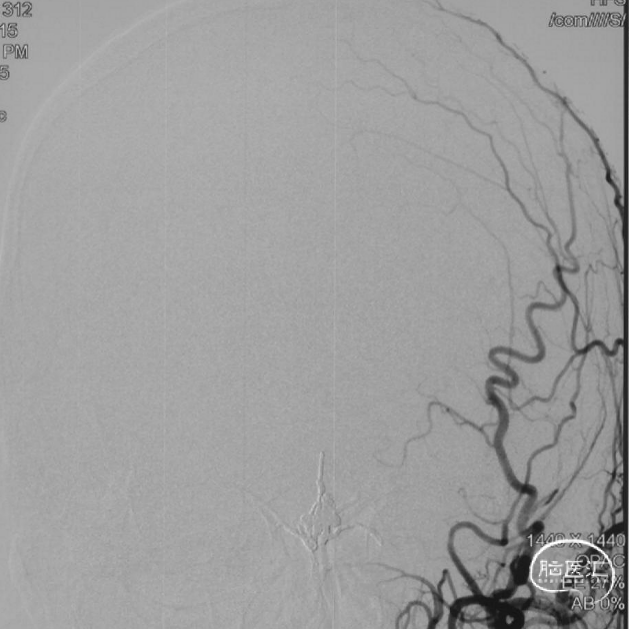 术后三个月造影复查,双侧颈内动脉、颈外动脉造影均未见静脉早显,DAVF治愈。