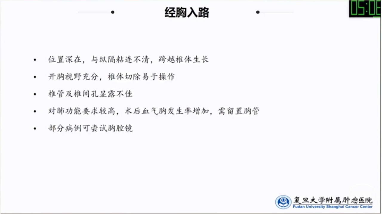· 椎体破坏、血管侵犯、胸膜下的病例尽量选用经胸入路或者联合入路