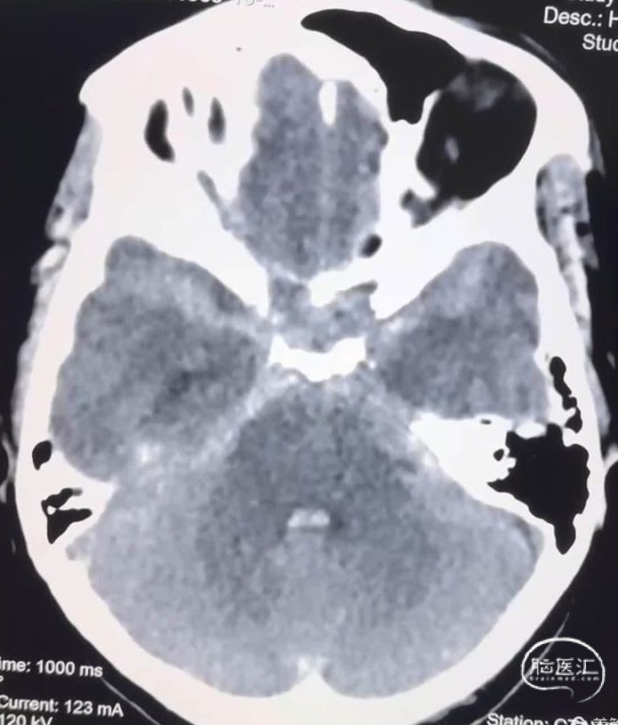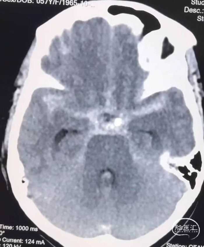 这是一个中年女性,广东佛山人,来青海旅游期间突然出现剧烈头痛、恶心、呕吐,由朋友送到距离最近的县医院,头颅CT示广泛性蛛网膜下腔出血,遂快速转入我院进入绿色通道进行快速评估。