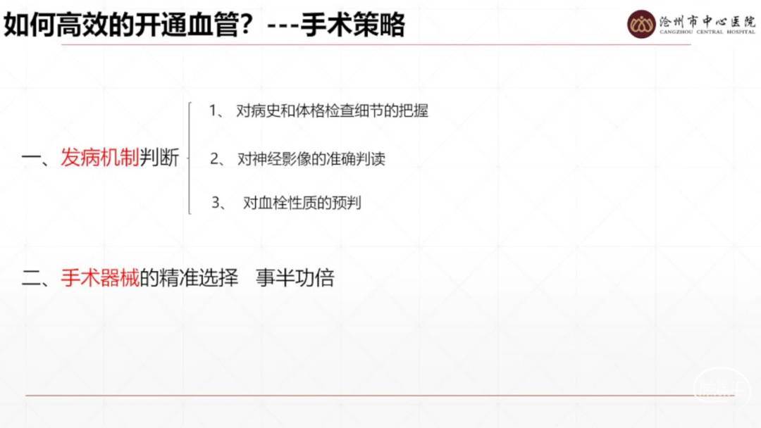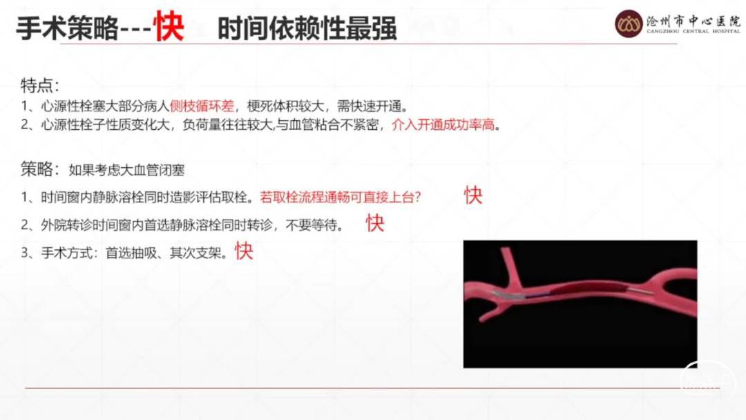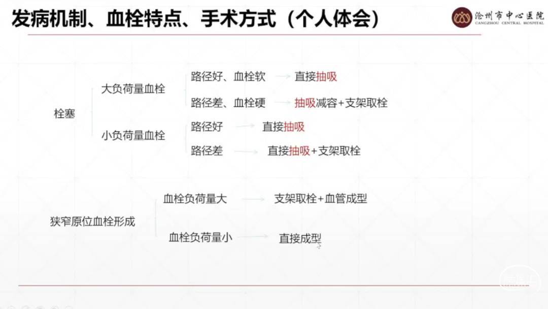 2、快速开通血管与手术策略相关。 (发病机制、血栓性质的判断至关重要)