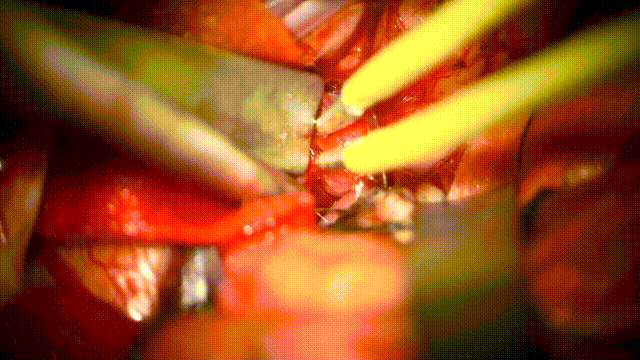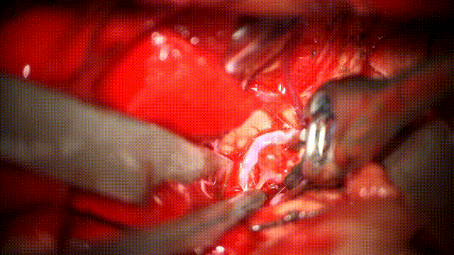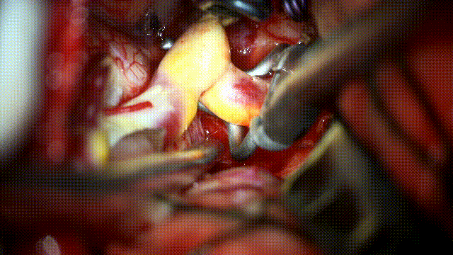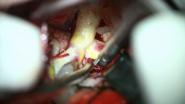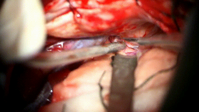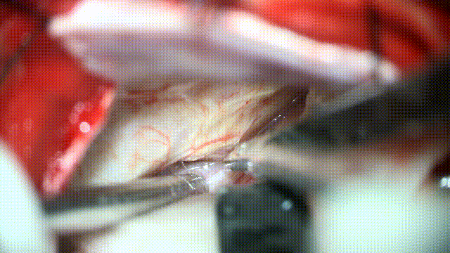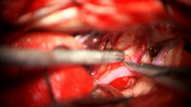 对于大脑中动脉破裂动脉瘤的手术,我们强调动脉瘤出血的控制,AR增强现实荧光技术相较于传统黑白荧光技术,荧光信号可以和显微镜下视野实时重叠,看到非常清晰直观的荧光影像,判断动脉瘤是否完全夹闭,载瘤动脉是都通畅。整个过程中如果出血的话可以直接在显微镜下一边处理一边看荧光显影的情况,增加了手术的安全性。