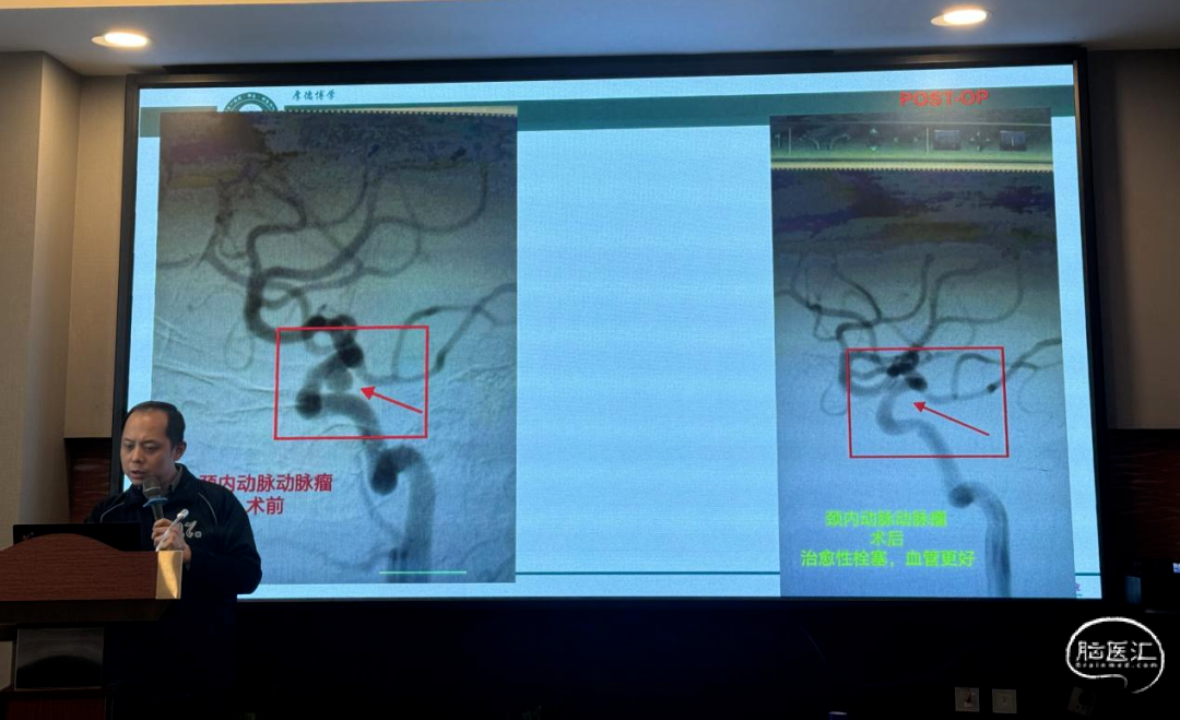 在姚教授手术过程以及术后影像回顾中,会议现场管生教授、武汉协和医院的胡学斌教授、郑州大学第一附属医院徐浩文教授、哈尔滨医科大学附属第一医院吴培教授、西安交通大学第一附属医院于嘉教授、武汉脑科医院潘力教授、宜昌三峡中心人民医院汪雷教授、珠海市人民医院程光森教授对支架的头端锚定位置、支架选型、术中操作步骤等内容进行了热烈的讨论,并将会议气氛推向高潮。
