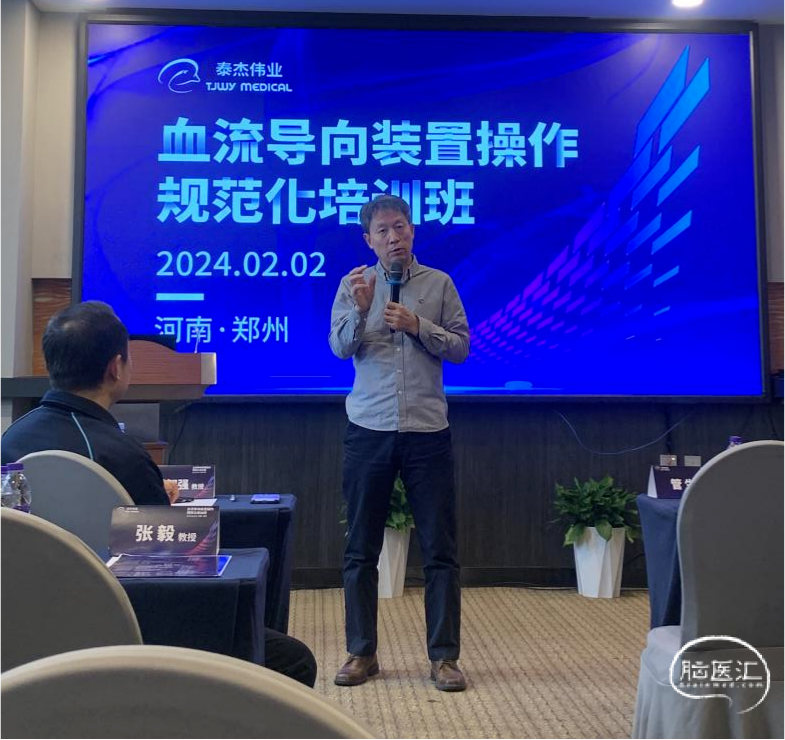 北京泰杰伟业科技股份有限公司崔巍总经理致辞,崔总首先感谢管生教授团队对国产产品的认可及对本次培训班的支持,感谢全国各地专家齐聚郑州共同探讨Nuva®血流导向密网支架的临床使用心得及经验分享。接着介绍了我司已上市产品在国内外的销售情况,对于血流导向密网支架产品,目前是治疗动脉瘤的最优策略,国外临床使用较其他产品具有更高的占比,相信该产品在国内也将会成为临床的主要选择,最后再次衷心感谢在座各位临床专家的到来。