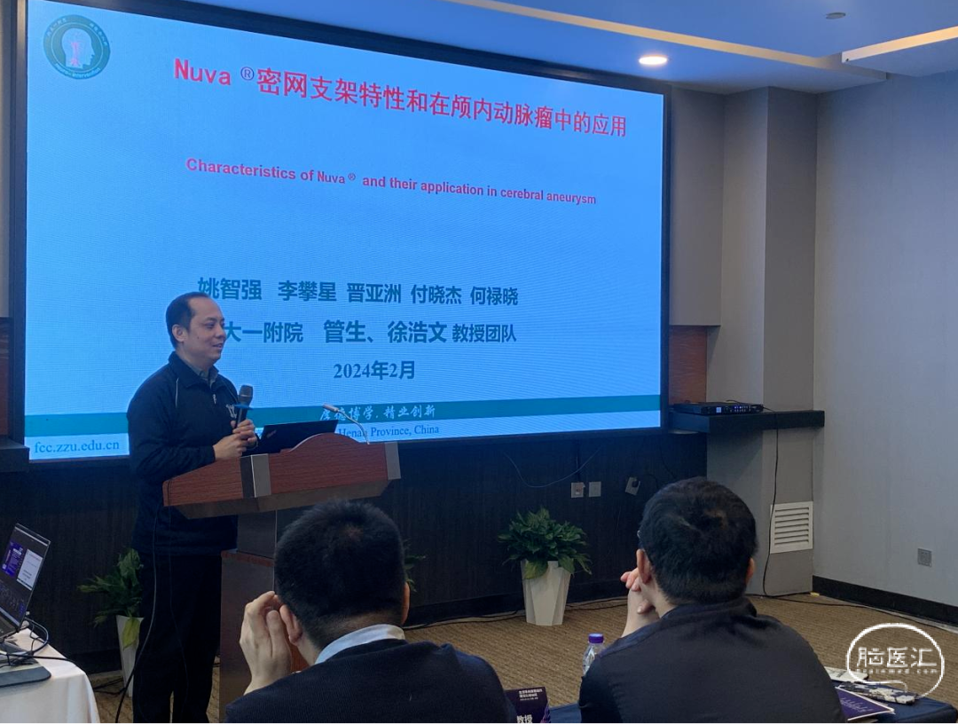 培训班会议主席,郑州大学第一附属医院管生教授开场致辞,并给大家描述了首次应用Nuva®血流导向密网支架这款产品时的心得体会,无论是从支架的输送、打开还是贴壁均达到了预期,这也使得他对国产密网支架产品更有信心,并对全国各地顶着凛冽寒风,冒雪前来的同行表示深深的感谢以及热烈的欢迎。