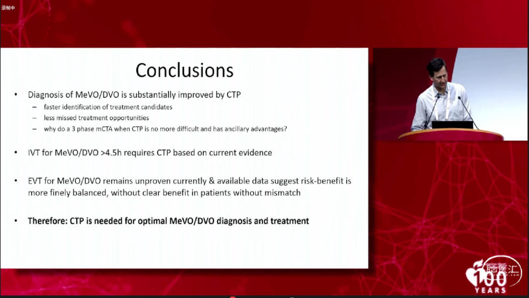 多个研究和临床实践证明,CTP能帮助够更快的识别MeVO,而改良CTA对于非专业的放射科医生来说,尤其是临床医生判读的时候会造成MeVO的漏诊;尽管时间窗内应用CTP帮助筛选溶栓病人并未获得阳性结果,但是在目前证据下,对于超过4.5h溶栓时间窗的病人进行溶栓探索时,仍必须使用CTP进行评估;血管内治疗对于MeVO的风险获益比目前仍未可知,尤其是对于CTP评估没有缺血半暗带的患者;因此,CTP对于中等血管闭塞(MeVO)的识别非常有必要。